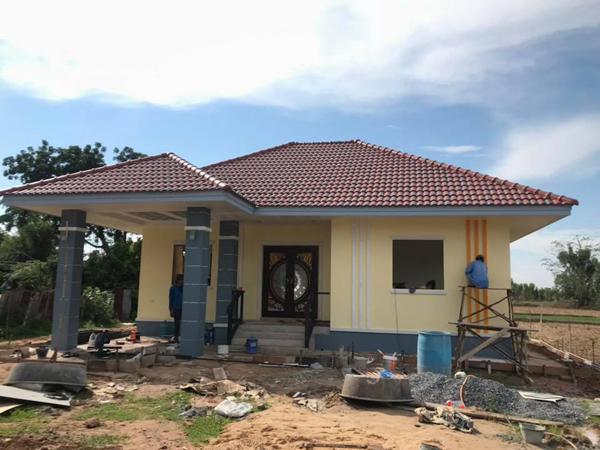 เติมดินหรือทรายรอบฐานรากเพื่อปรับระดับพื้น